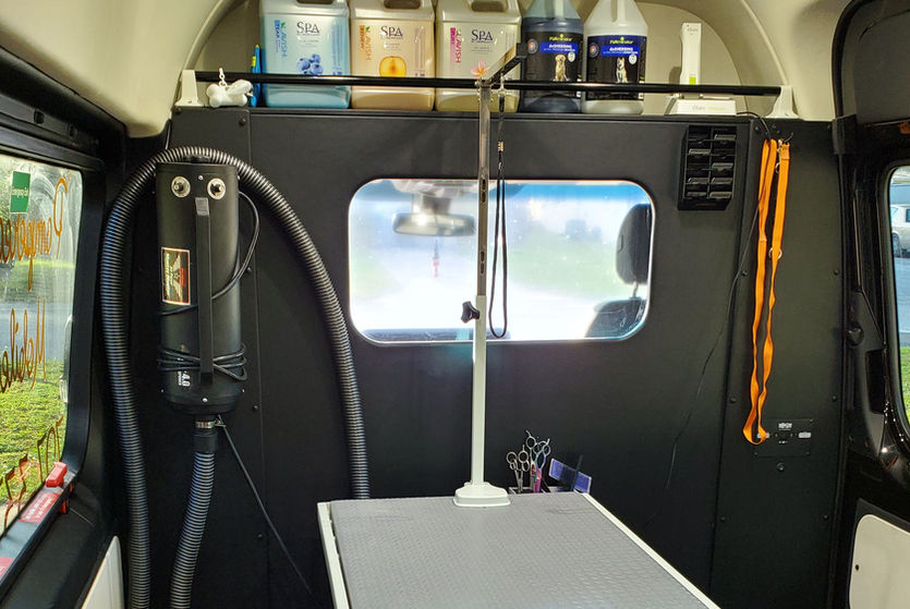 Take the stress and hassle out of taking your pet to the groomer. Our 2019 Mercedes Sprinter Van is luxury grooming on wheels! Upon our arrival to your appointment, we encourage you to check out our workspace. Our van is fully equipped with clean water, electricity, and top-of-the-line supplies and equipment to completely pamper your pet.